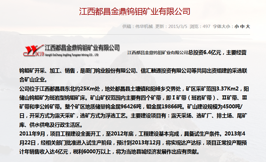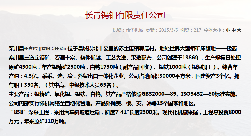 合作單位:江西都昌金鼎鎢鉬礦業(yè)有限公司偉華機械 榮譽證書